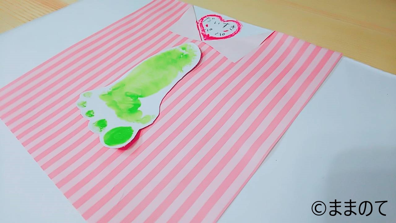寝返りの時期や動き回る赤ちゃんは、スタンプを使用したほうが簡単に押せるかもしれません。絵の具やインクが付いた手足を拭くための濡れタオルやウエットティッシュをあらかじめ用意しておくと、床や家具の汚れを防ぐことができますよ。