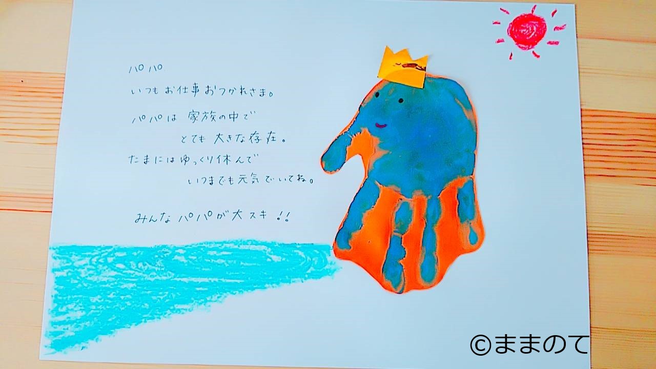 ゾウの大きな身体は、一家の大黒柱であるパパをイメージすることができます。手形を使ってゾウを描き、パパの日に贈る方が増えているようです。