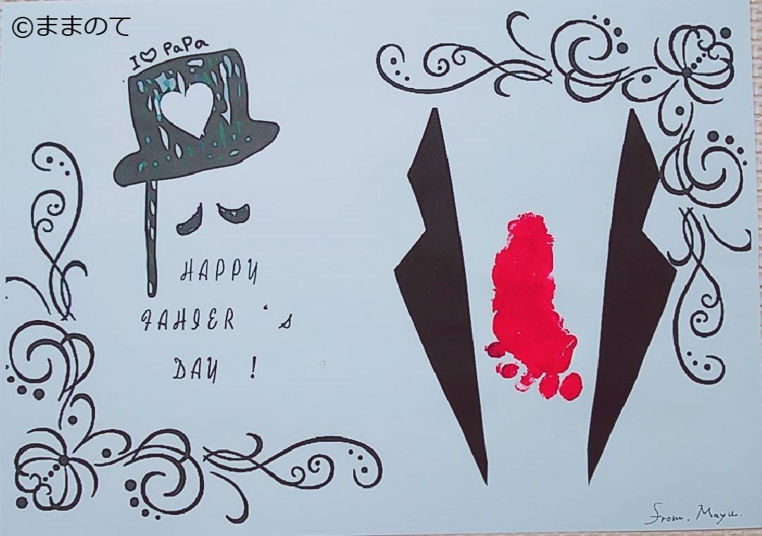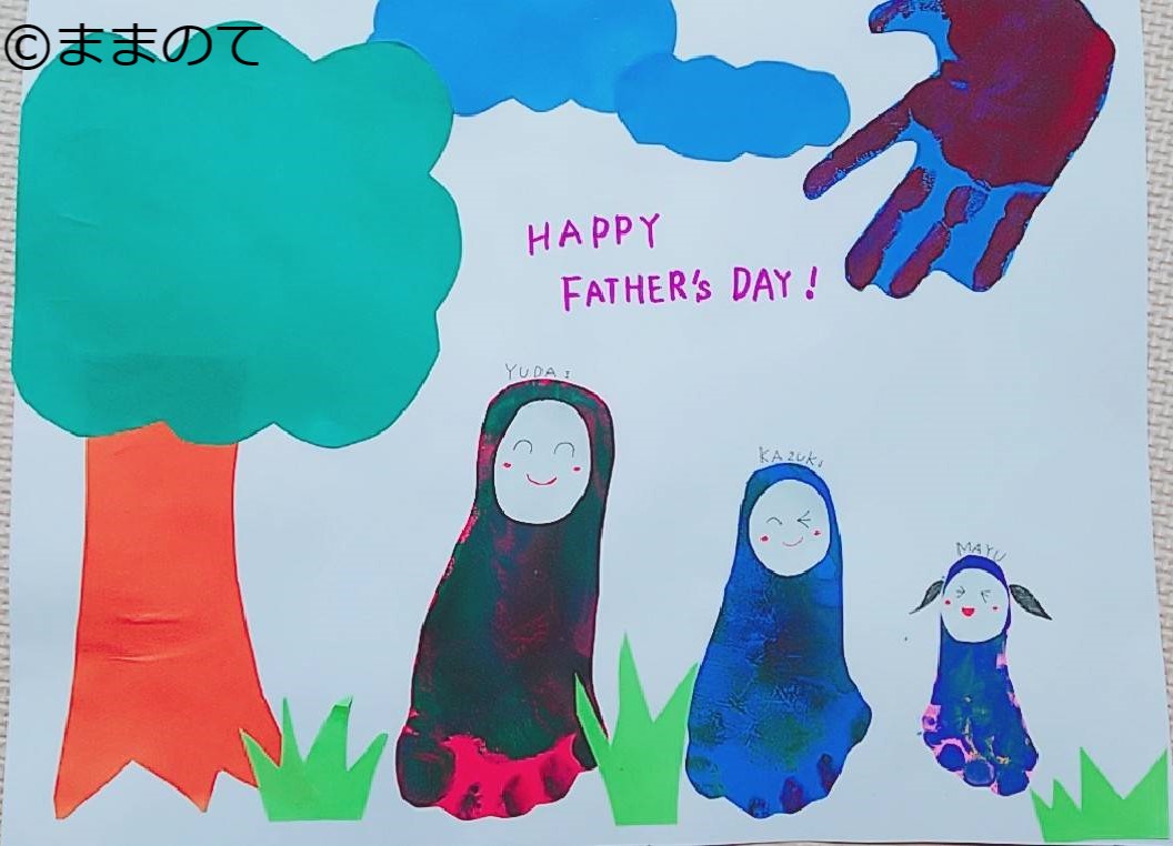 パパの似顔絵を描き、足型のネクタイを貼り付けるアイデアがあります。子どもがまだ似顔絵をうまく描けない場合はママが変わりに描いて、後から子どもの足型を貼ってあげても良いでしょう。