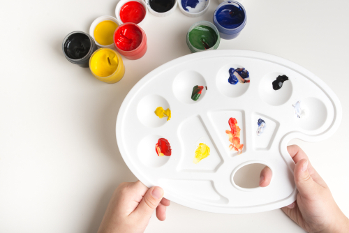 手形・足型アートは、台紙となる画用紙と絵の具やスタンプがあれば簡単に始めることができます。絵の具は色の濃さでアートの印象が変わってくるため、イメージによって水加減を調整すると良いでしょう。