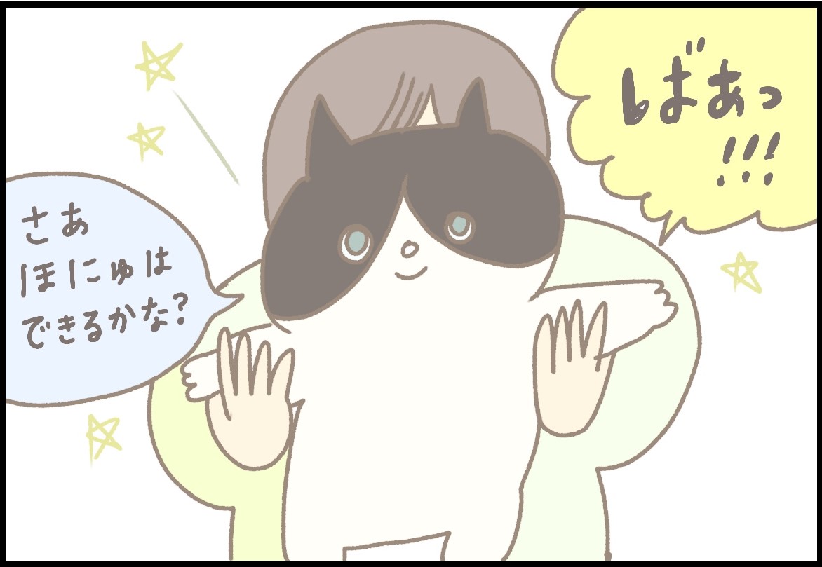 一生懸命ママのまねをするほにゅくん。子どものがんばっている姿は、まさに「目に入れても痛くない」ほどのかわいさですね…!(編集部)