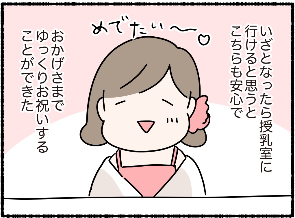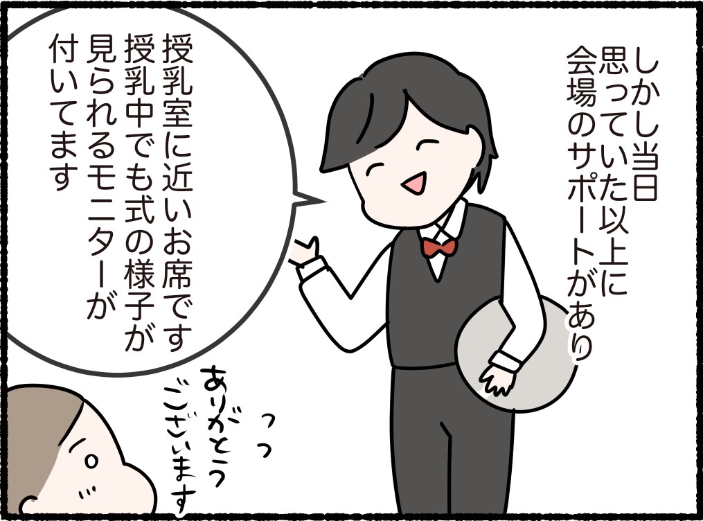 授乳じゃなくても、子どもが急に泣くなど式場にいづらいときには避難してもよいと教えてもらいました。