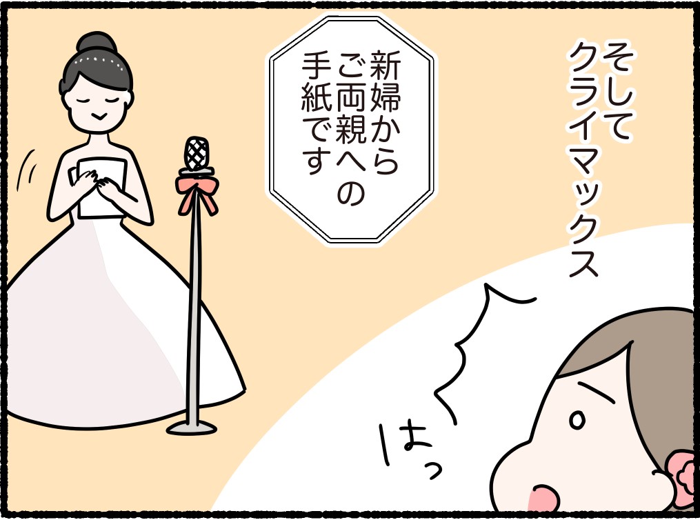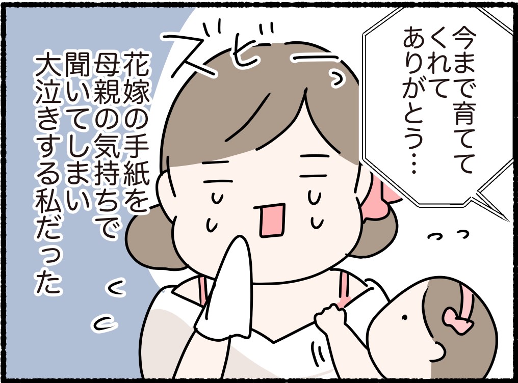 「娘」だった私はすっかり「母親」の立場になってしまっていたので、花嫁の手紙も「母親」の気持ちで聞いてしまい…