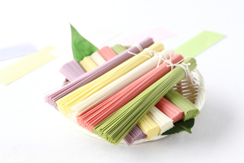 七夕の日にそうめんを食べる風習が根強い地域では、真っ白なそうめんだけでなく、色の付いたそうめんが用意されることもあります。日本で七夕に色付きそうめんを食べるようになったのは、江戸時代のころとされています。
