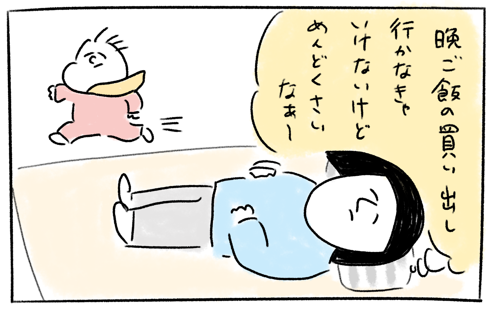 Instagramで大人気のとまぱんさんが描く、ゆる育児マンガ!買い出しがめんどうなときに、つい考えてしまうことは…?