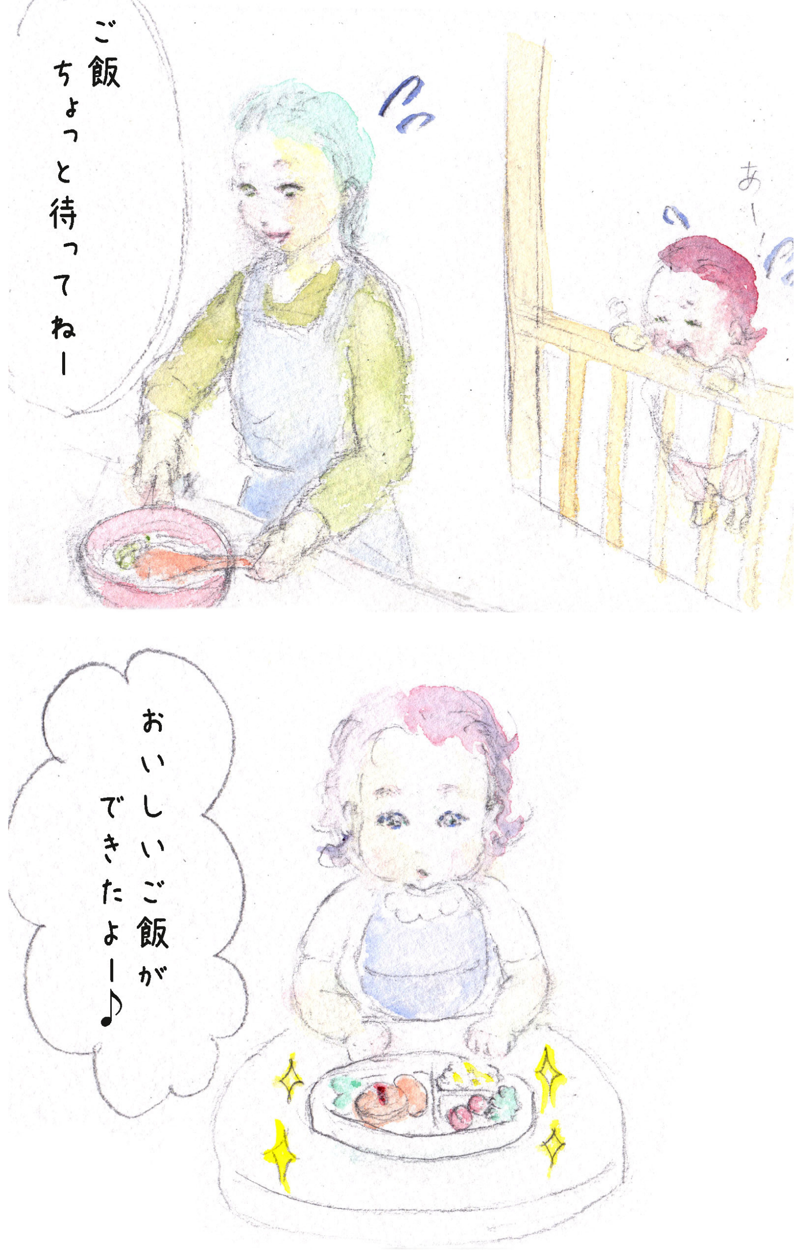 ご機嫌ナナメの子ども、終わらない抱っこ…。一生懸命離乳食を作っても子どもは遊んでばかりで食べてくれず、お風呂上りには服を着るのを嫌がる…。
