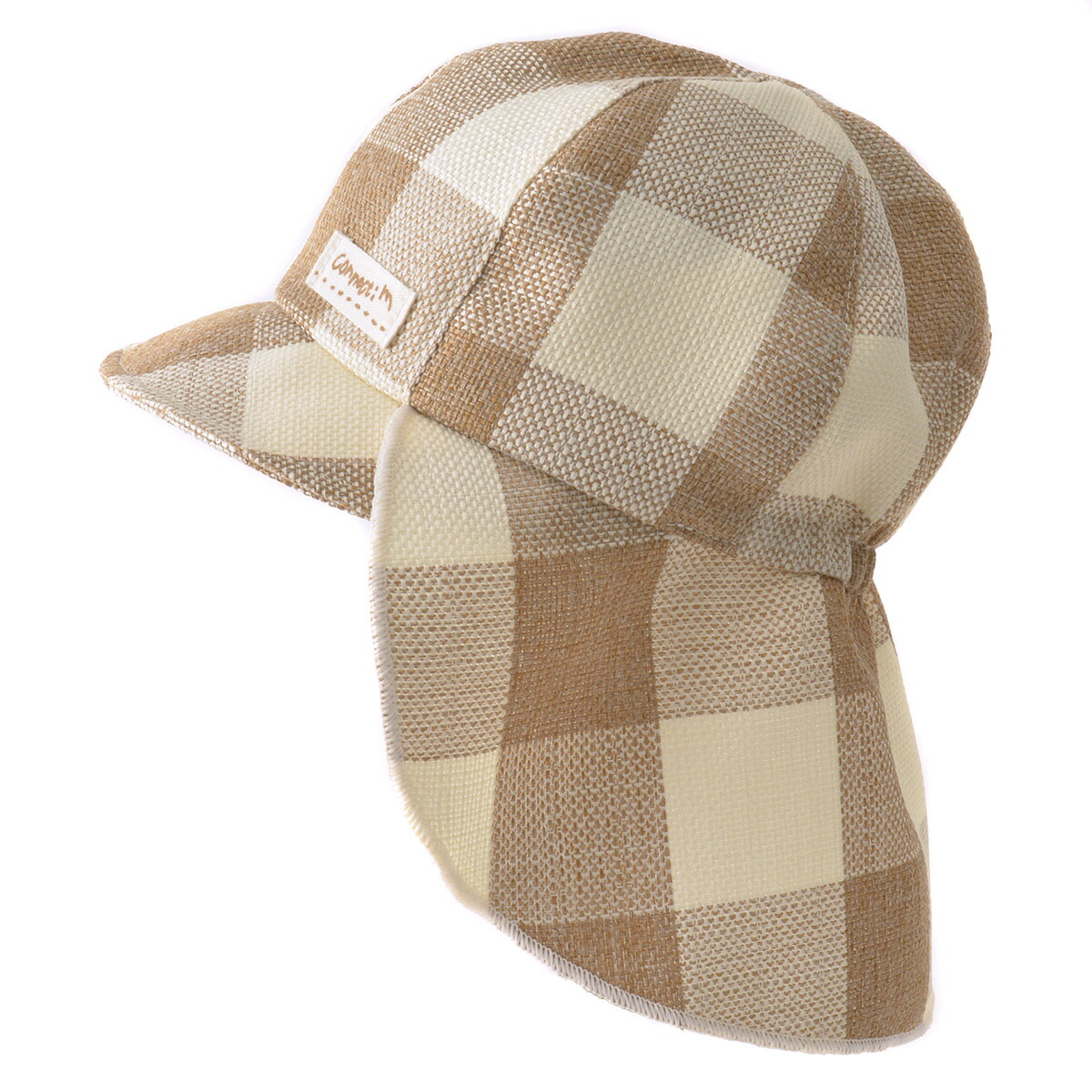 サラのバオバブキャップです。柔らかい薄手の綿素材で、肌あたりが良く軽やかにかぶれます。自宅での洗濯が可能なので、汗っかきの子でも安心です。広めのつばや肩まである大きめの日よけカバーで、強い日差しや紫外線からお肌を守ってくれますよ。