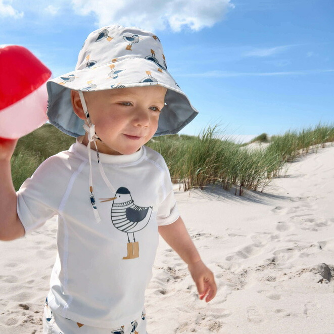 月齢の低い赤ちゃんでも安心して使える日焼け止めもあるので、日に当たる時間帯や時間の長さ、肌タイプなどに合わせて選ぶと良いでしょう。ラッシュガードや、帽子に直接つけられるUVタイプのサンシェードやケープカバーなどもあると便利です。