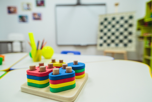 | Tクラス | 3歳~4歳 | 積み木を使った立体図形の認識 数を学ぶ など |