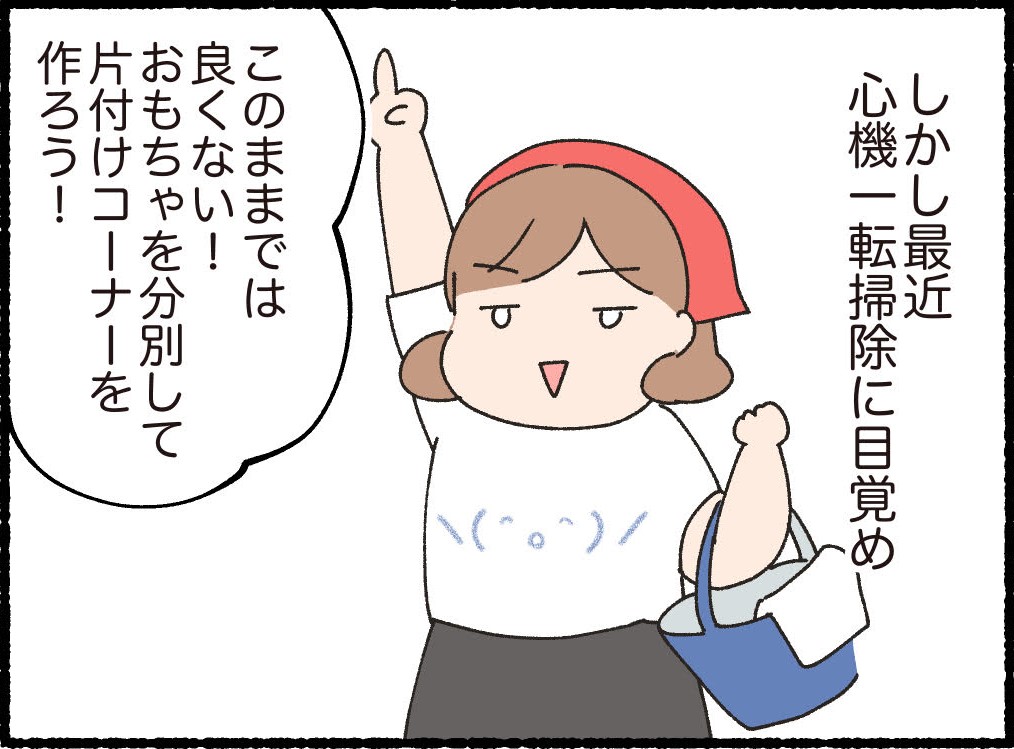 SNSで話題沸騰のオキエイコさんが描く育児漫画!自分に似て片付けが苦手な娘…とあきらめていたけれど、片付けコーナーを見直したら自分で片付けるように…!