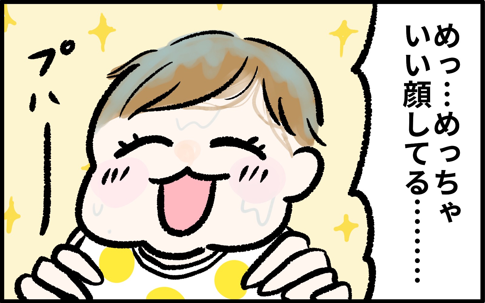 「最高の幸せ浴びました…!」と、満面の笑みを浮かべるぐっちゃん。ママの愛情をいっぱいに受けている様子が、お顔からも伝わってきますね!(編集部)