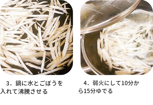 3.鍋にごぼうと水を入れ沸騰させる
