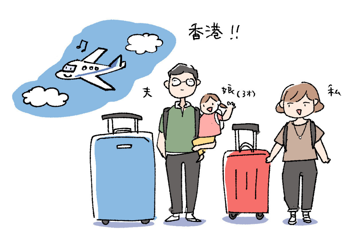 娘が3歳のときに初めての海外旅行に行くことになり、旅行準備からバタバタしたオキエイコさん。初めての飛行機での様子は…?