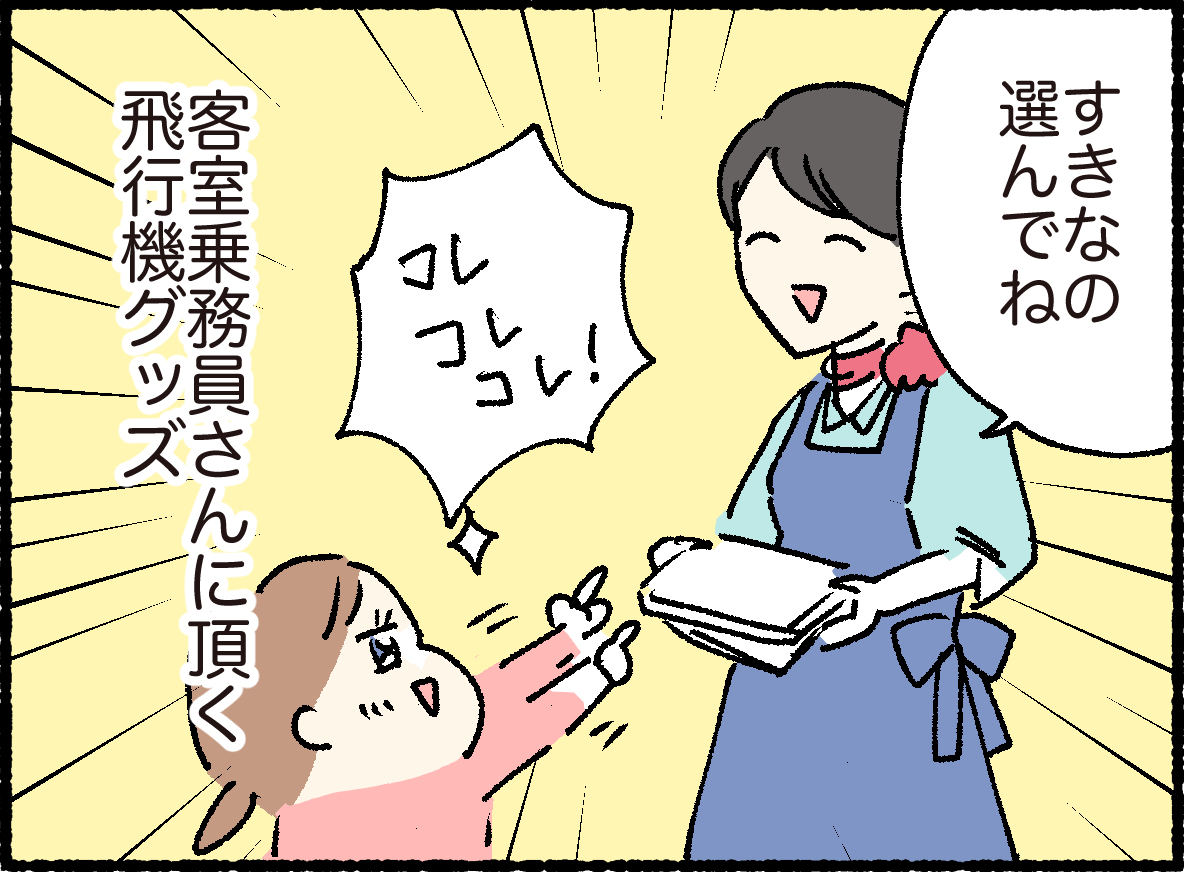 そして客室乗務員さんに飛行機のおもちゃをもらい、機内BGMのアニメソングを聴き、大満足!