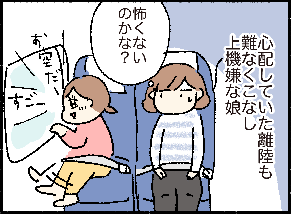 SNSで話題沸騰のオキエイコさんが描く育児漫画!初めての子連れ海外旅行では、心配していた飛行機に挑戦。いよいよ機内に入り出発を迎えたとき、娘の反応は…?