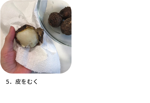 1.里芋は皮をむいて食べやすい大きさに切る。