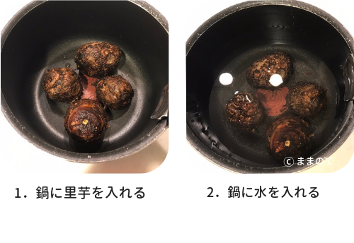 2.鍋に里芋がかぶるくらいの水を入れる。
