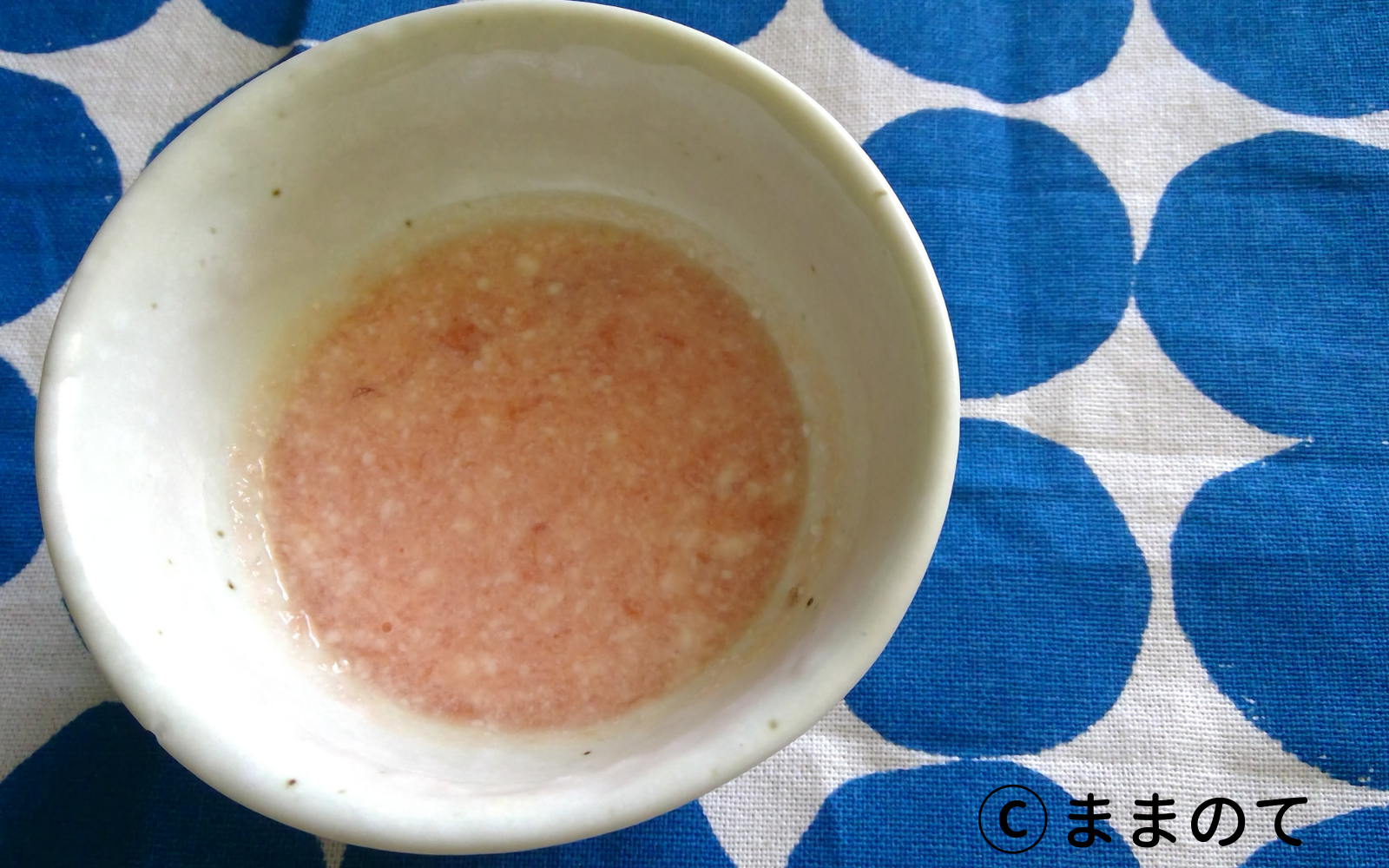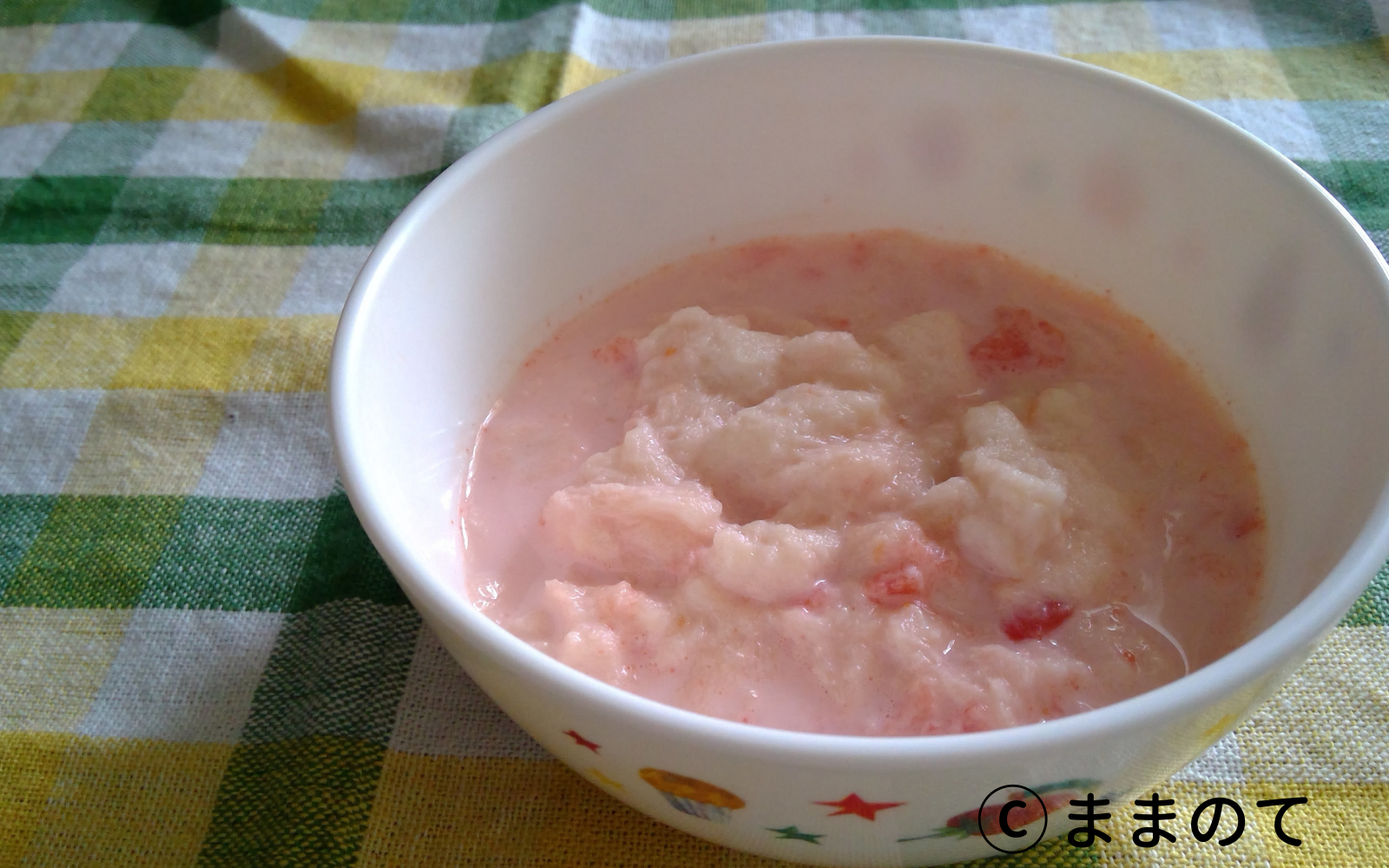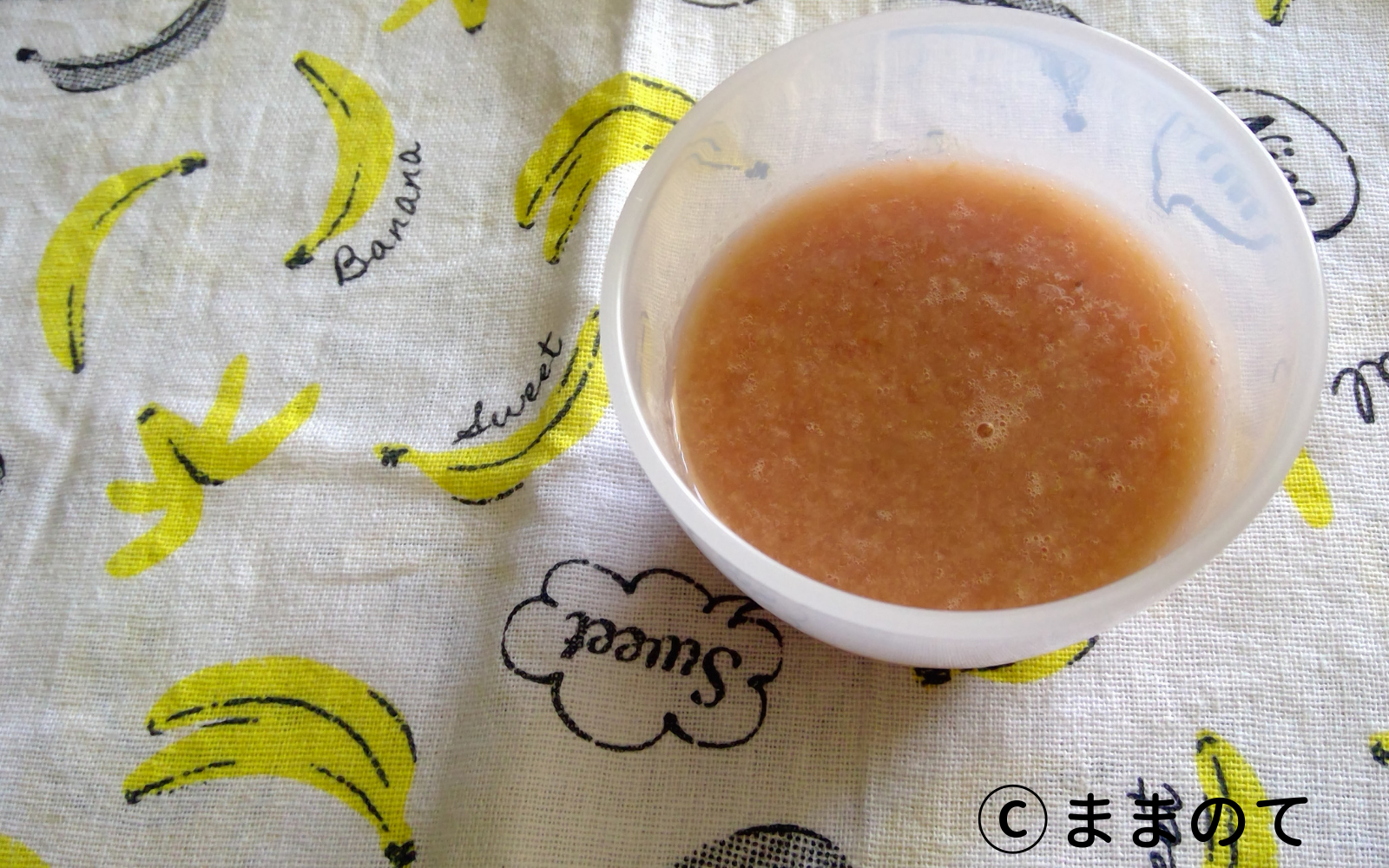 | 中期 (7ヶ月・8ヶ月) 〇 | 種を取り除き、ペースト状に少し粒が残る程度まで、粗くすりつぶす。舌ですりつぶせる豆腐程度のかたさが目安。 |