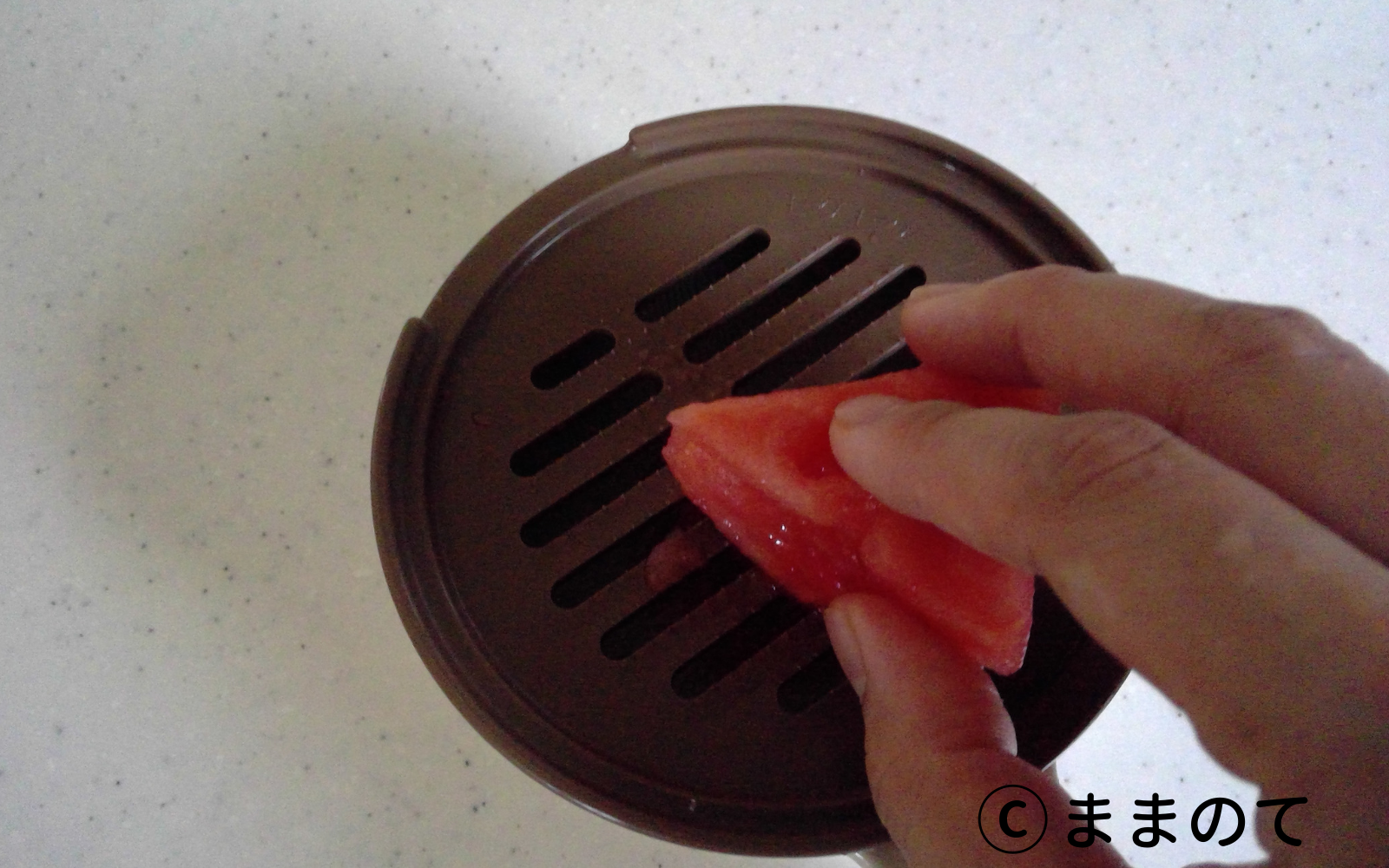 スイカの水分が多くてうまく筋がつかない場合は、半冷凍状態になってから筋を入れてみてくださいね。筋を入れない場合は薄く伸ばして冷凍すると、必要な分だけ折って使えます。
