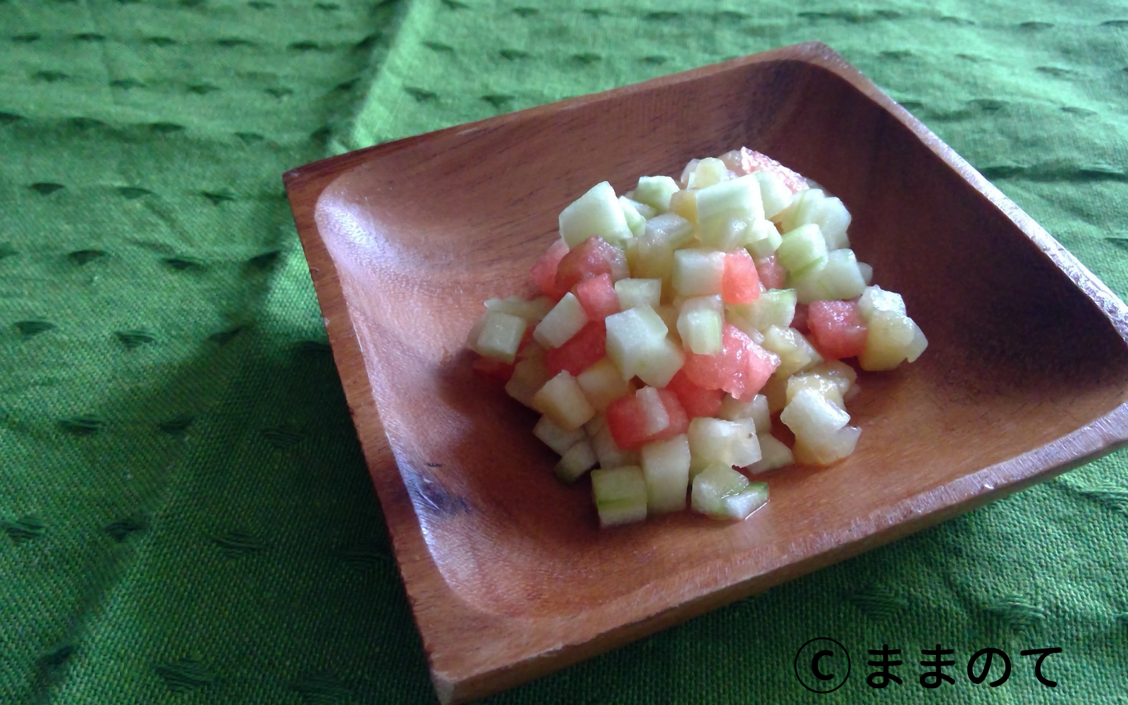2.スイカの半量をすりおろし、半量を1cm角に切る