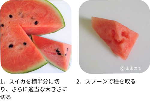 離乳食にスイカを使うときは、どのような下ごしらえが必要なのでしょうか。写真付きで下ごしらえのコツを解説します。