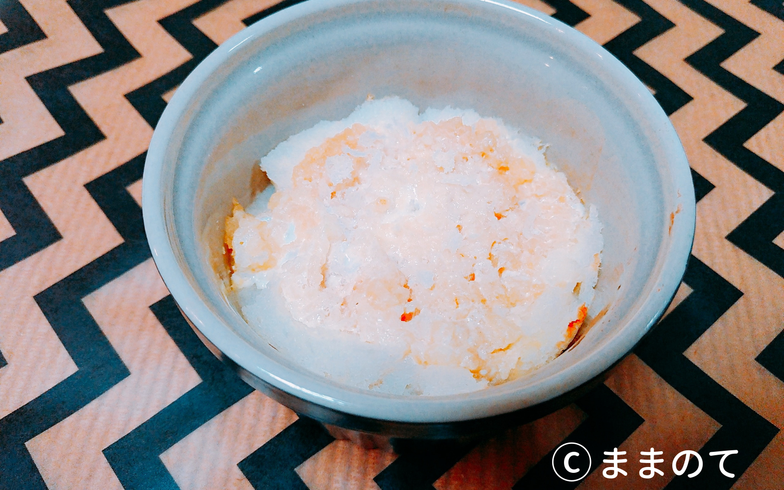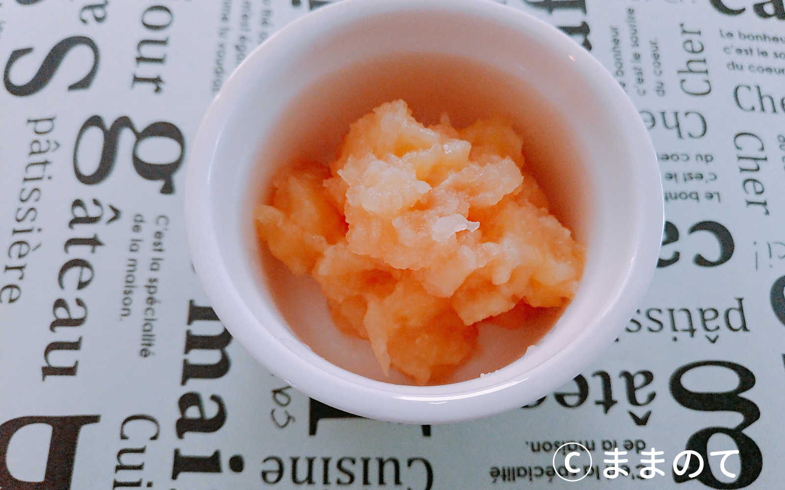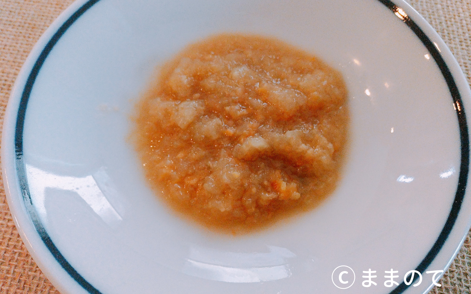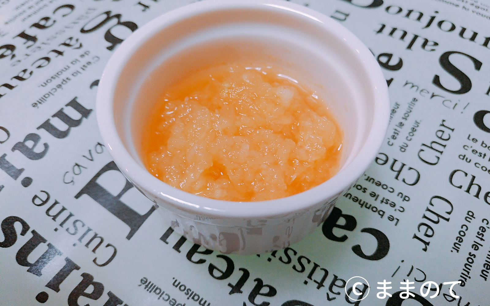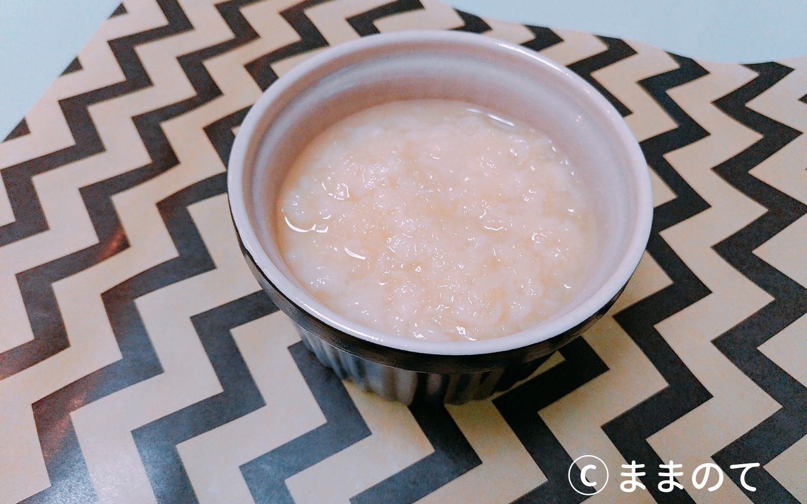 最初は水を多めに加えて薄めに作るのがポイントです。すりおろしたりんごの舌触りに慣れてきたら、徐々に濃度を調節していきましょう。