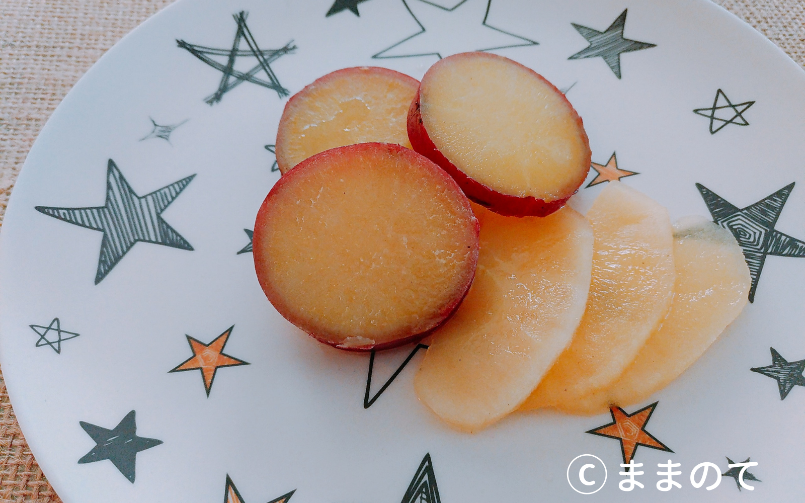 さつまいもとりんごの甘味を楽しむために、砂糖を入れずに調理するのもおすすめです。
