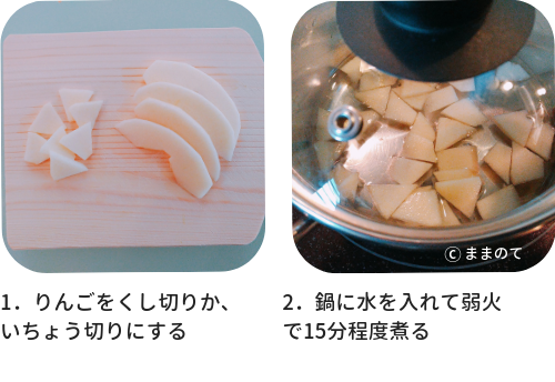 2.小鍋にりんごと水を入れ、やわらかくなるまで弱火で煮る