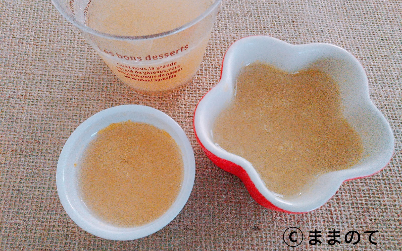 仕上がったカスタードはあら熱を取ってから、冷蔵庫に入れて少し冷やしてもおいしいですよ。赤ちゃんの身体が冷えないよう、冷やしすぎに注意してくださいね。