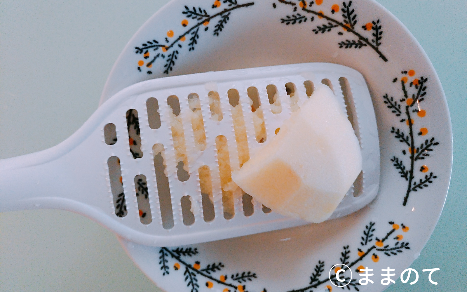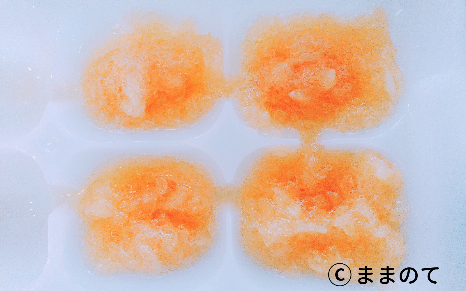 すりおろしたりんごは、製氷皿に入れて冷凍しましょう。1回分ずつ小分けにフリージングできるので重宝しますよ。