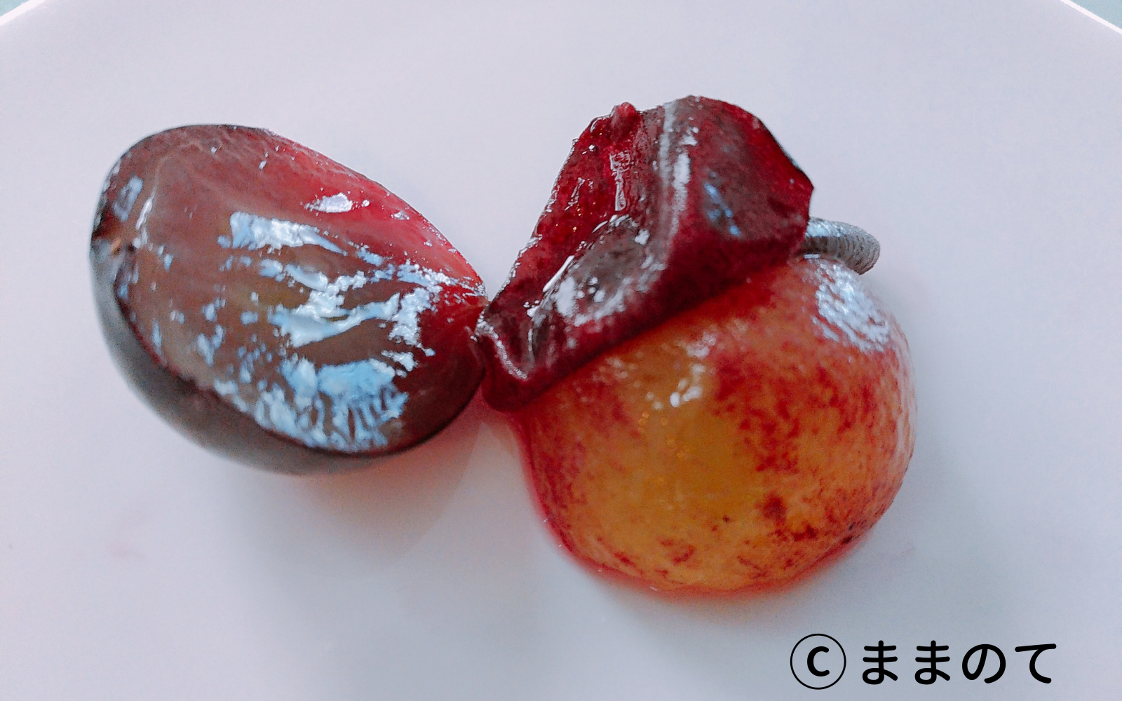 1.ぶどうは皮をむき、種を取って電子レンジで30秒ほど加熱する。