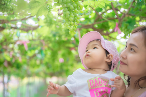ぶどうはデラウエアや巨峰、シャインマスカットやピオーネなど種類が豊富です。いろいろなおいしさを家族みんなで楽しめると良いですね。