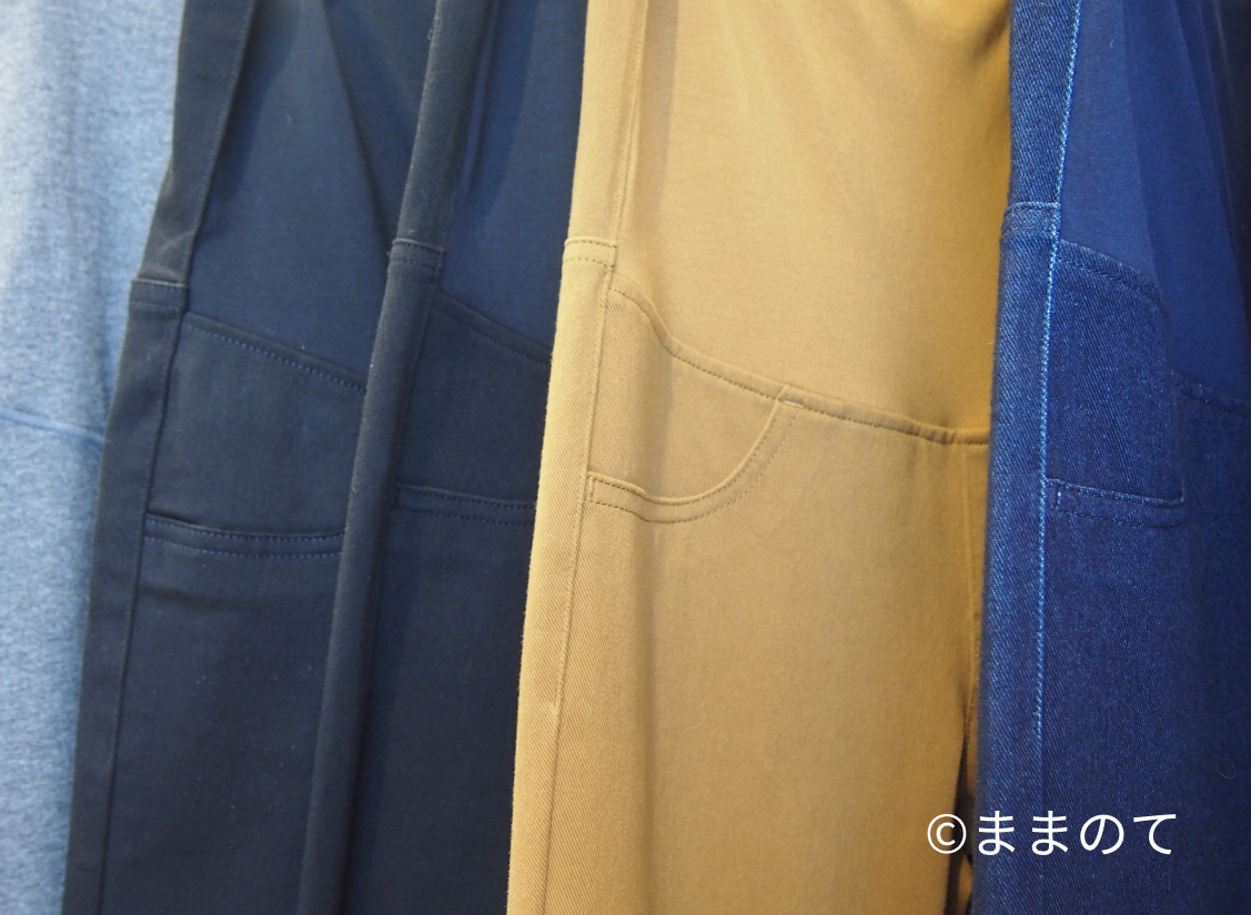 右から・マタニティデニムレギンスパンツ、マタニティレギンスパンツ(ともに2,990円/サイズXS~XXL ※XS・XXLはオンラインストア限定サイズ)
