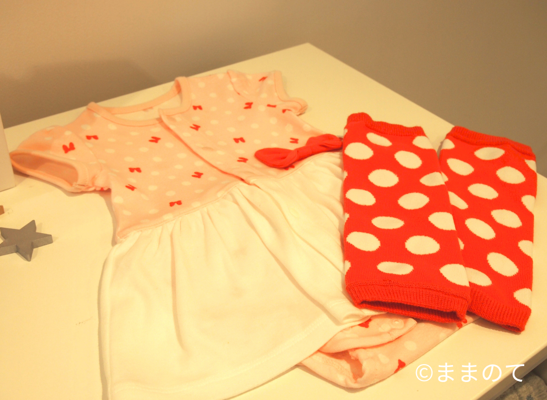 右・プリントワンピース(1,500円/サイズ80~100センチ)・レギンス(リブ・10分丈)(790円/サイズ70~110センチ)