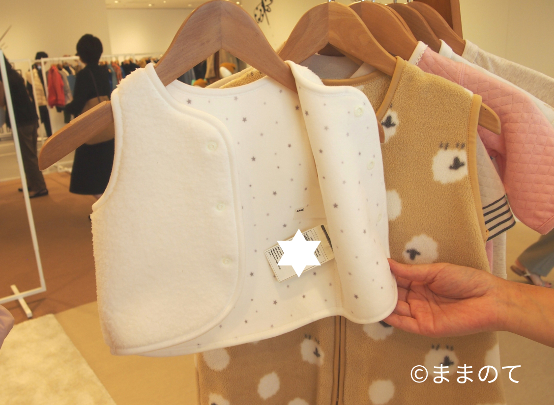 リバーシブルのベストは季節の変わり目やおでかけ時に重宝しそうですね。マイクロフリースのスリーパーはほっこりとしたアニマル柄です。