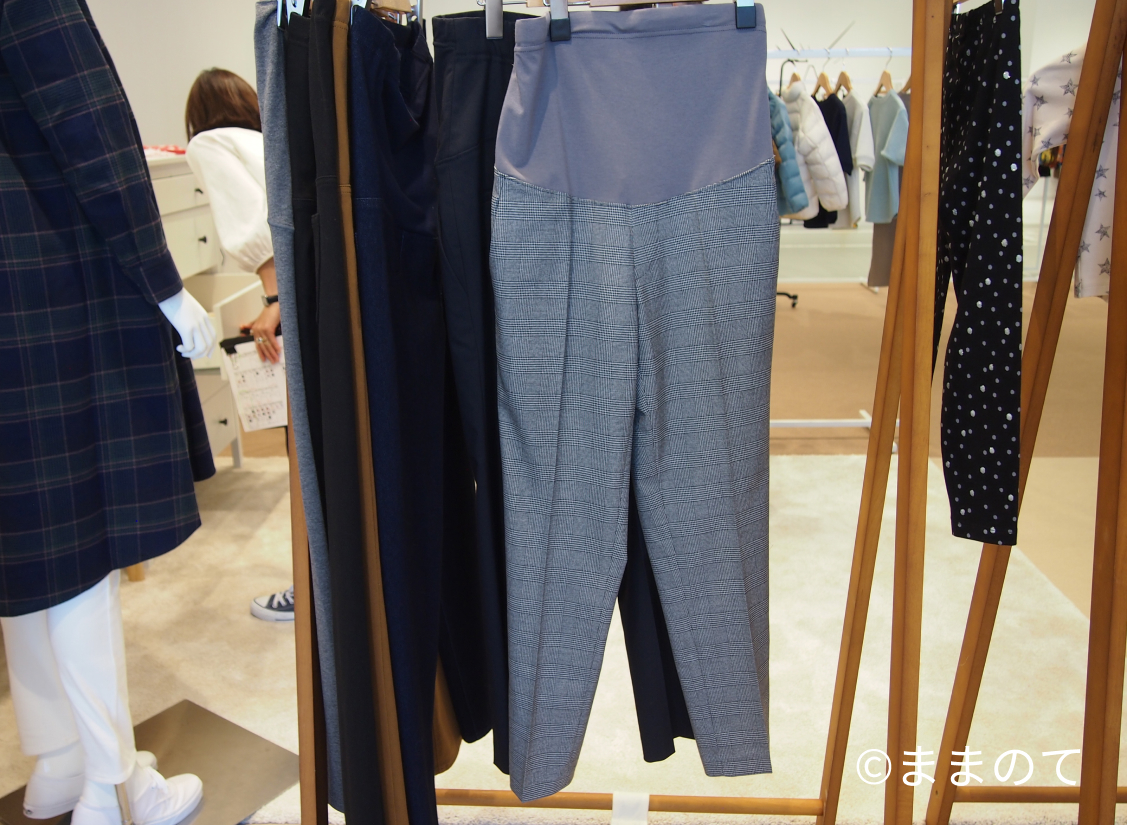 手触りもなめらかな上質素材。お腹部分はグレーのジャージー素材になっています。シーンを選ばないグレンチェック柄は産後のお仕事復帰時にも使えそうですね。