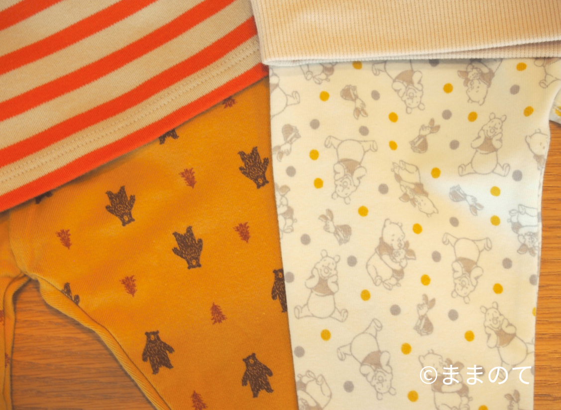 左・クルーネックT(ボーダー・長袖)(790円/サイズ70~110センチ)・レギンス(クマ・10分丈)(790円/サイズ70~110センチ)