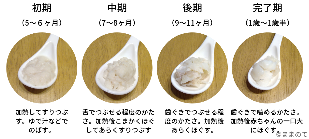 種類 | 初期(ゴックン期) | 中期(モグモグ期) | 後期(カミカミ期) | 完了期(パクパク期) |