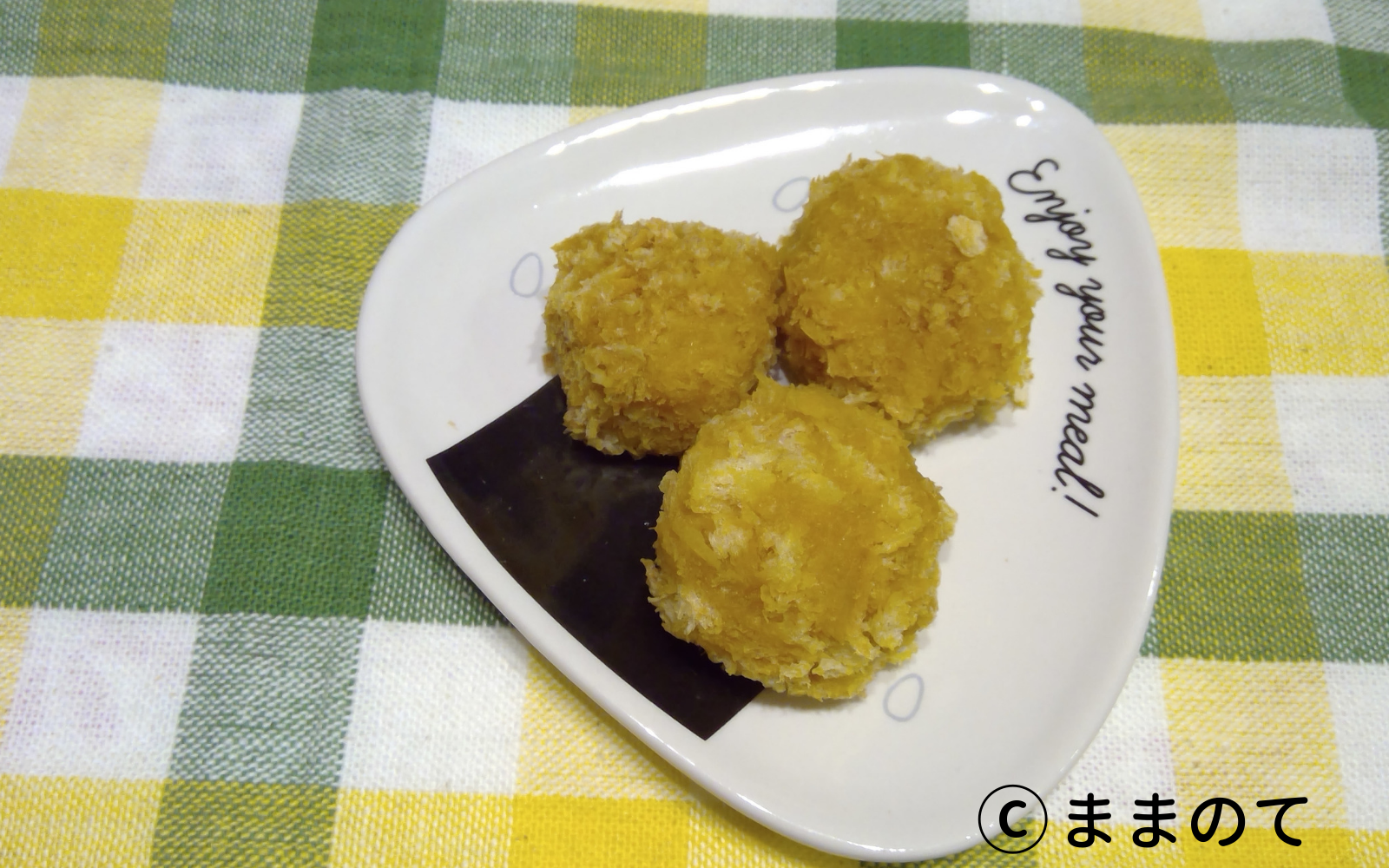 5.かぼちゃ・玉ねぎ・白身魚を混ぜ、成形する