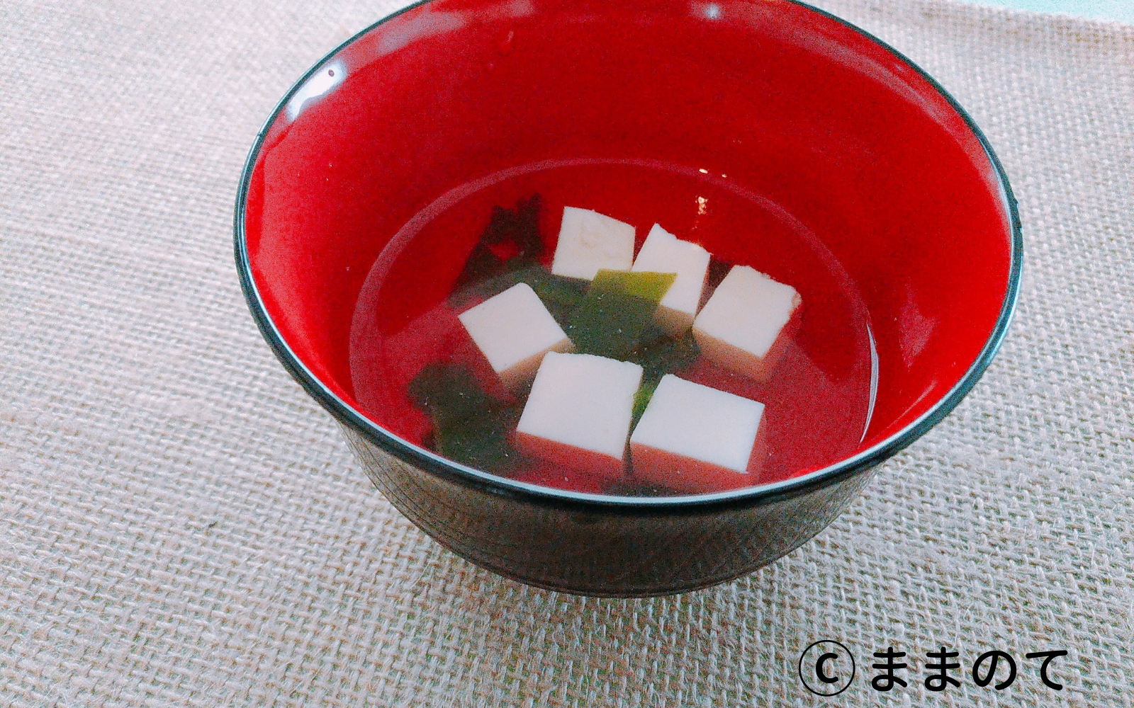 3.さいの目に切った豆腐を加えて再度煮立て、しょうゆで風味付けしたら完成