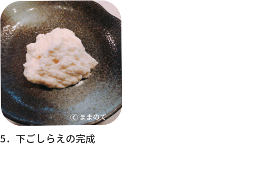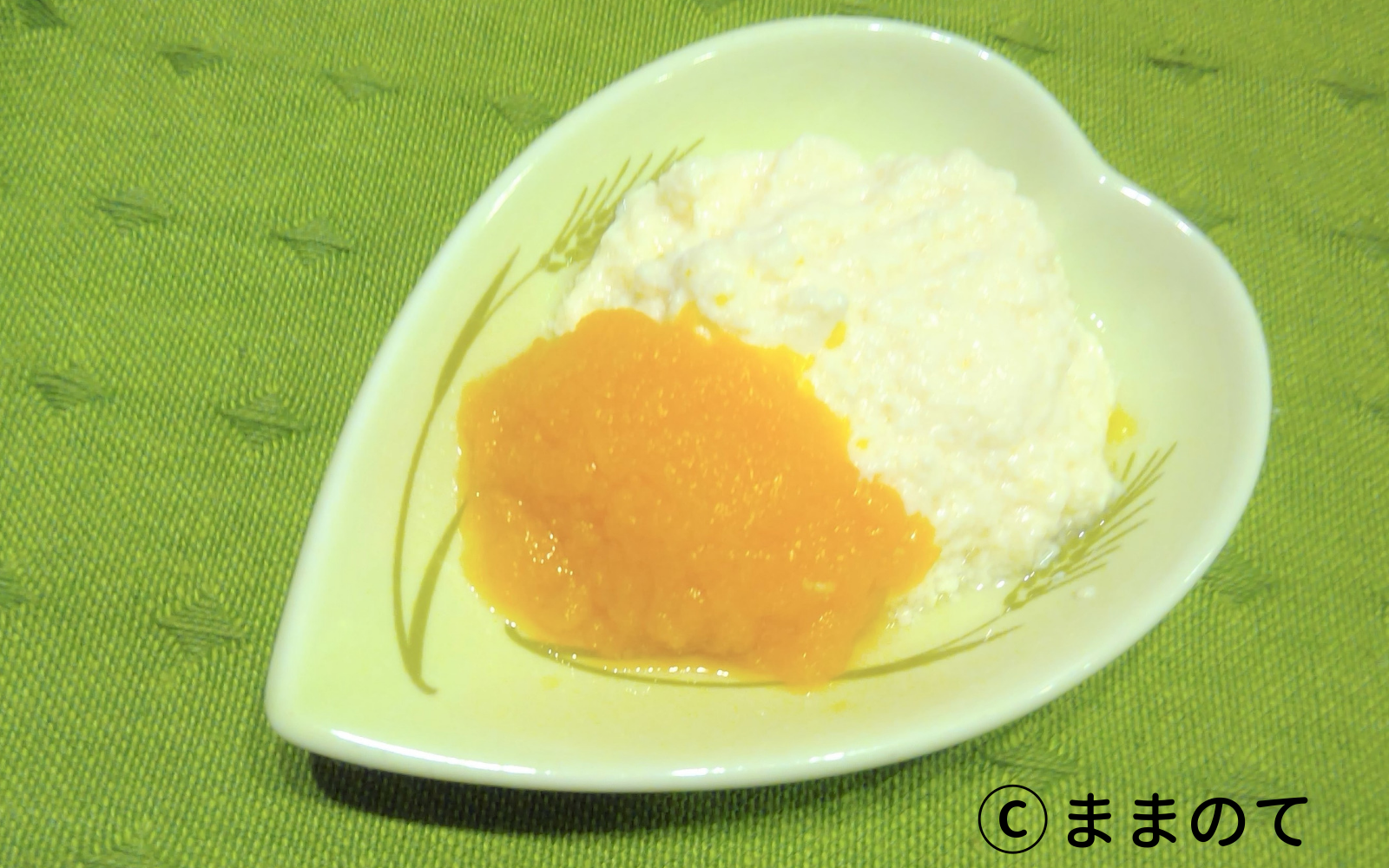 | 初期 (ゴックン期) | 加熱後、すり鉢などでなめらかにすりつぶし、ペースト状にする。初めのころは裏ごしすると良い。 |