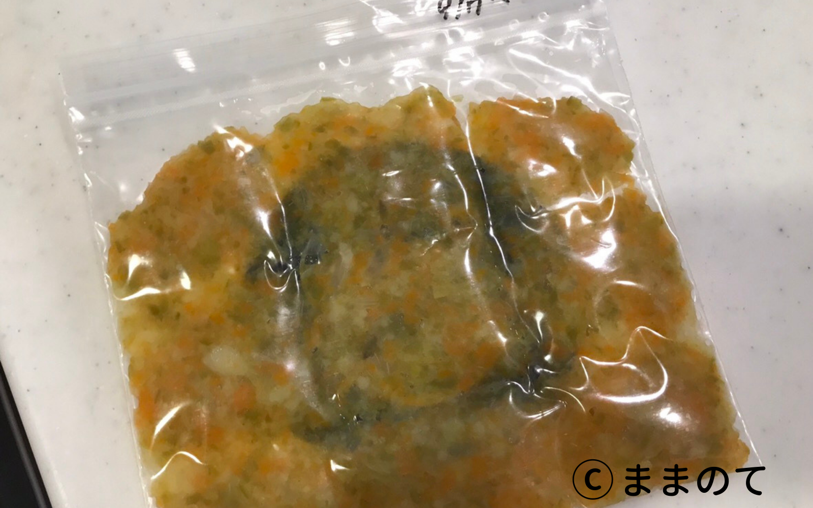 野菜ペーストは製氷皿か、フリーザーバッグに薄くのばして箸などでくぼみをつけてから冷凍庫に入れる方法がおすすめです。使う際はフリーザーバッグの上からパキンと折って取り出してくださいね。