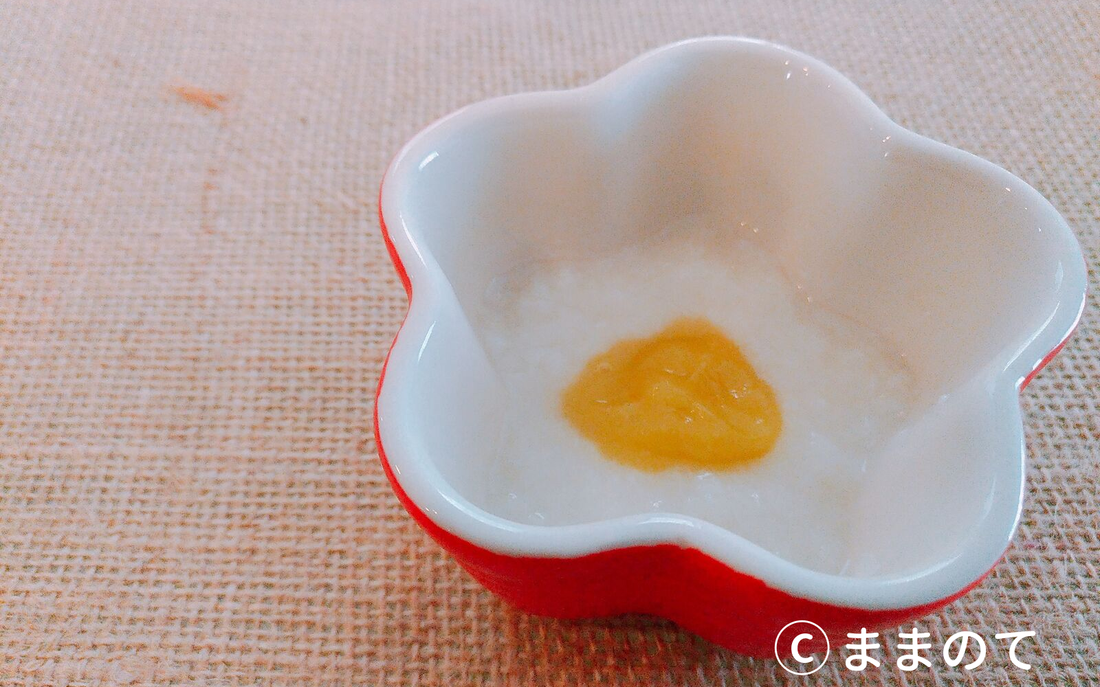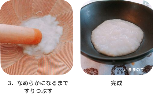 | 中期(モグモグ期) 〇 | 味付けを変えたアレンジ粥に移行する |