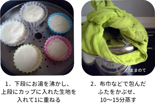 蒸し器で蒸しパンを作るときは、以下の手順で蒸しましょう。
