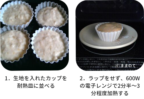 電子レンジで蒸しパンを作るときは、以下の手順で調理します。