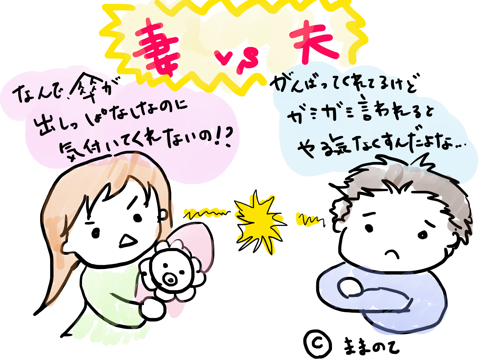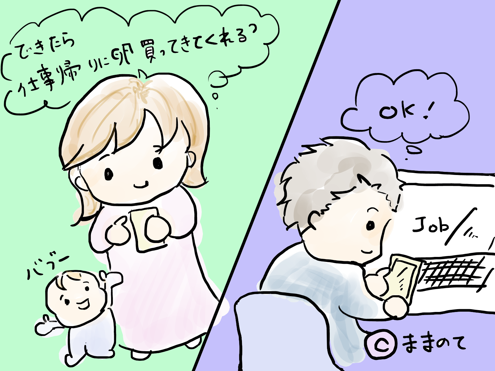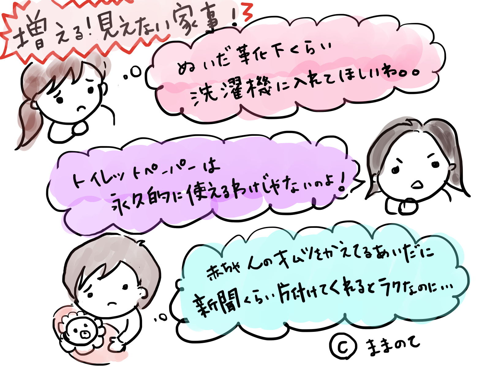 「夫が知らない家事リスト」の書籍イラストは、現在ままのてで連載中の作家・とまぱんさんが描かれています。ほのぼの&ほっこりさせられる、とまぱんさんのイラストも見ごたえたっぷりですよ。ぜひ、ままのてオリジナルのマンガもご覧くださいね。
