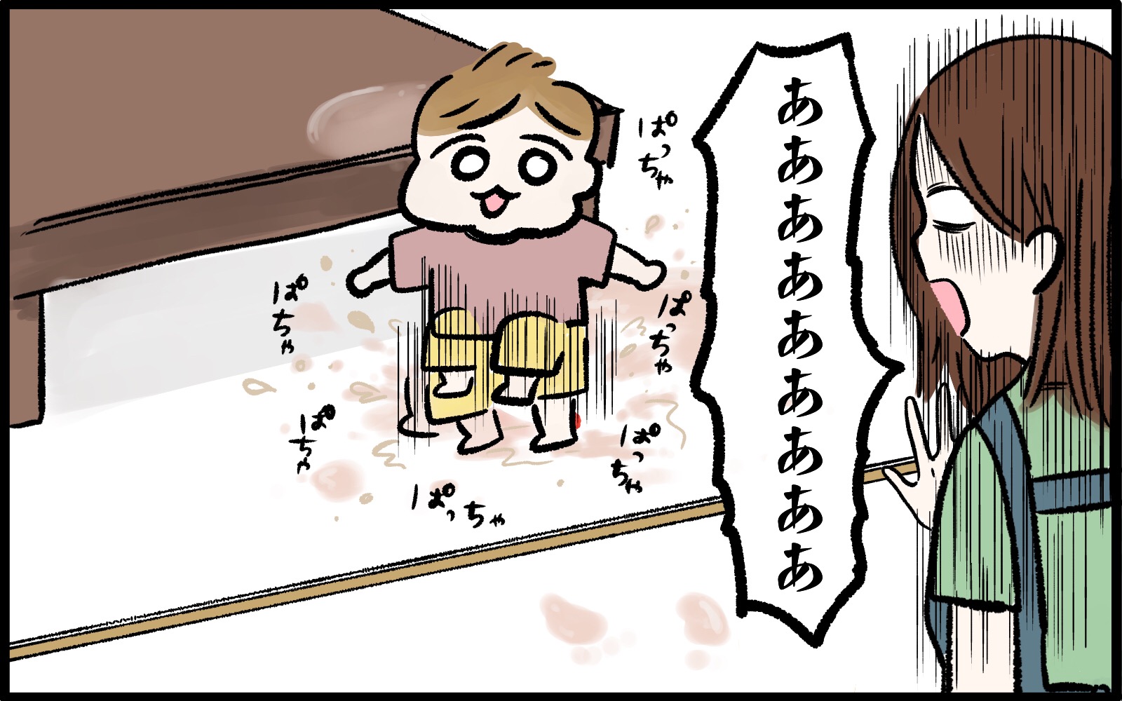 Instagramで大人気のchiikoさんの育児マンガ!ある日、リビングに麦茶のプールができあがっていたのを発見したchiikoさんと息子・ぐっちゃん。そのとき、ぐっちゃんがとった行動とは…?