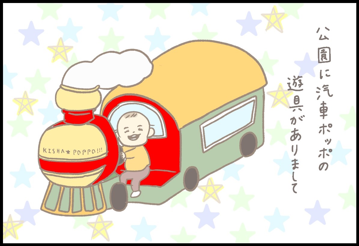 Twitter&Instagramで大人気・つぶみさんのマンガをお届けします!公園の汽車の遊具がお気に入りの、息子・ほにゅくん。遊具に取り付けられたハンドルを握って、さぁ、ドライブにレッツゴー!