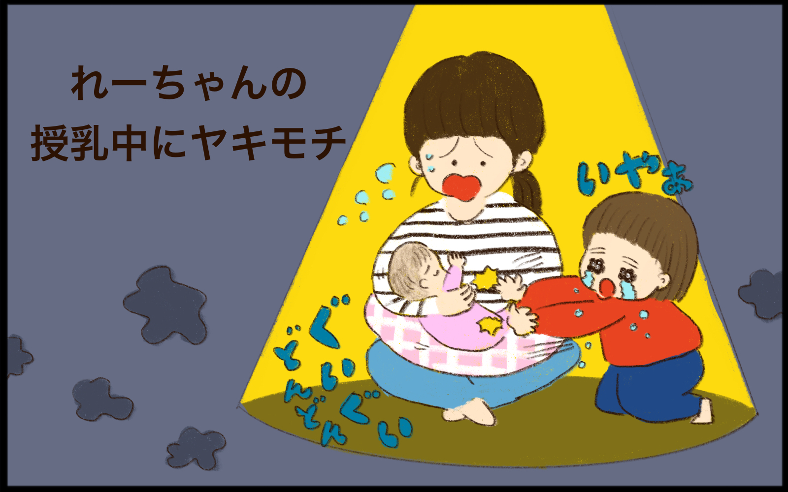 授乳中、抱っこしておっぱいをあげるときが一番やきもちを妬いているようでした。