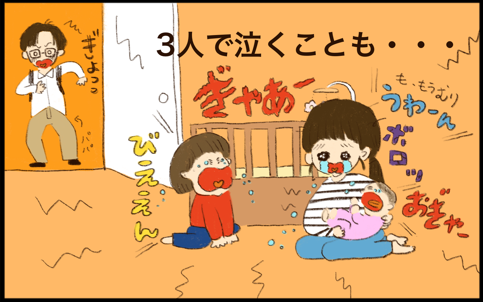 ふたりが泣いているのを見て私も涙がこらえきれず、三人でわんわん泣いてしまったときは、帰って来たパパに心配をかけてしまいました。
